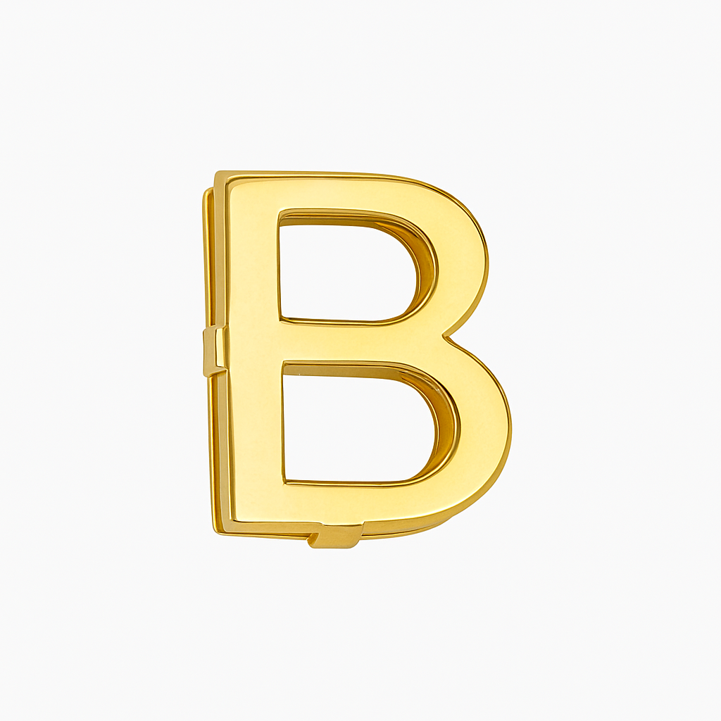 Pingente letra B galeria em ouro 18k.