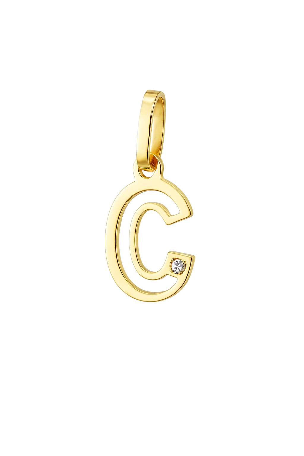 Pingente letra C vazado em ouro 18k com 1 brilhante.