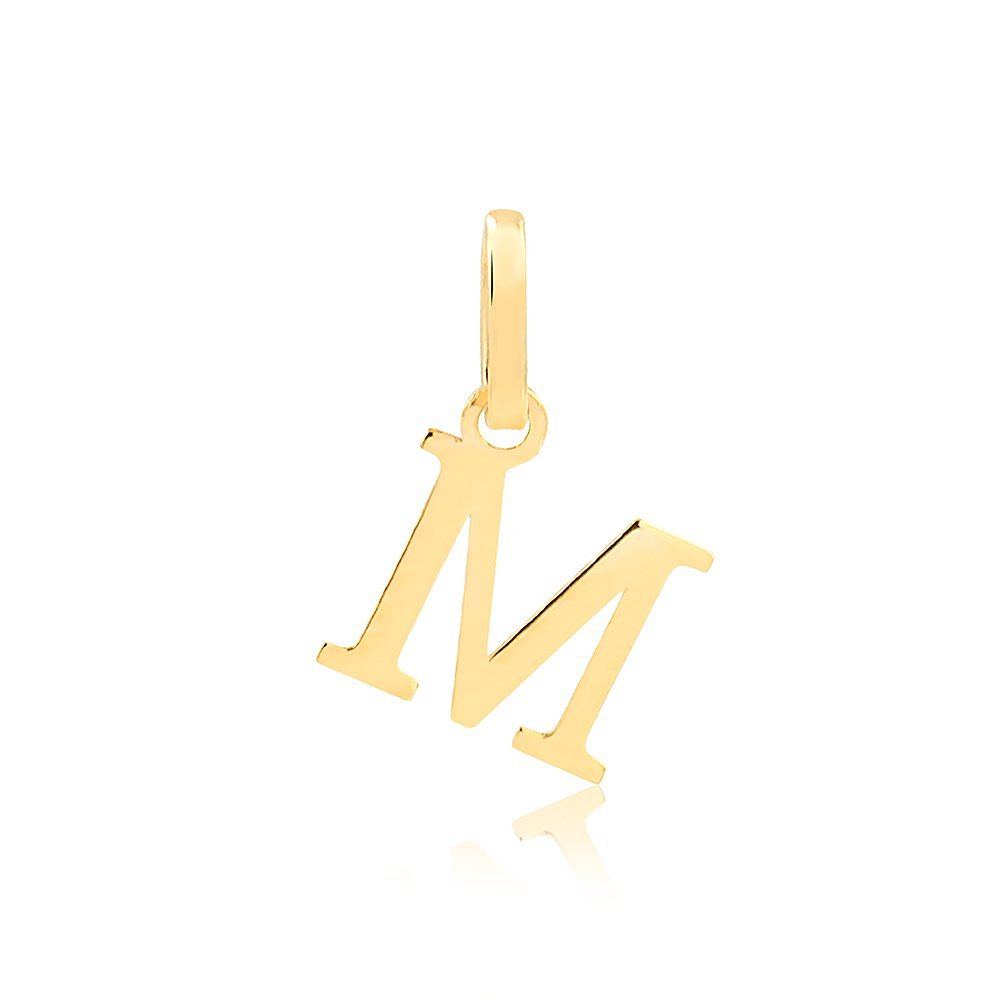 Pingente Letra M de 5,5mm em ouro 18k.