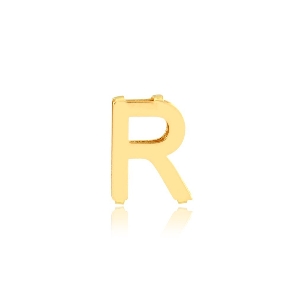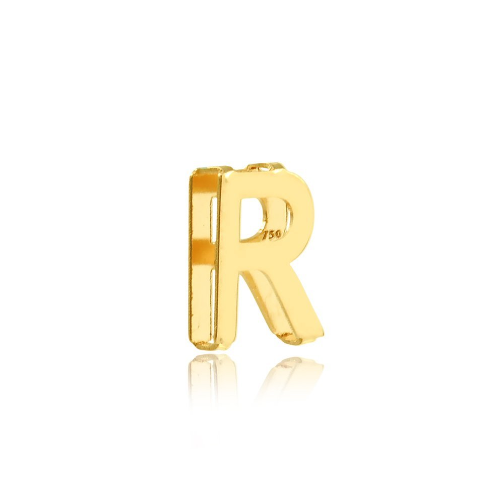 Pingente letra R galeria em ouro 18k.