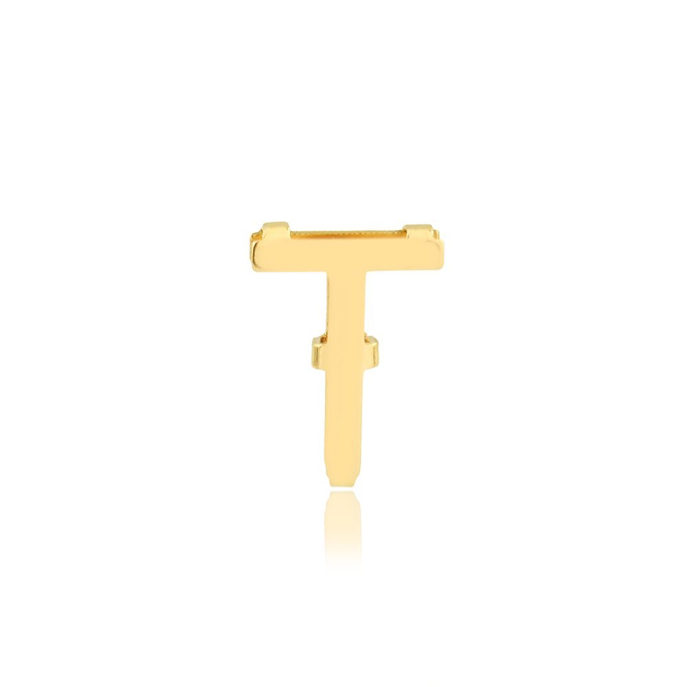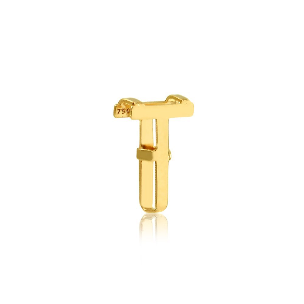 Pingente letra T galeria em ouro 18k.