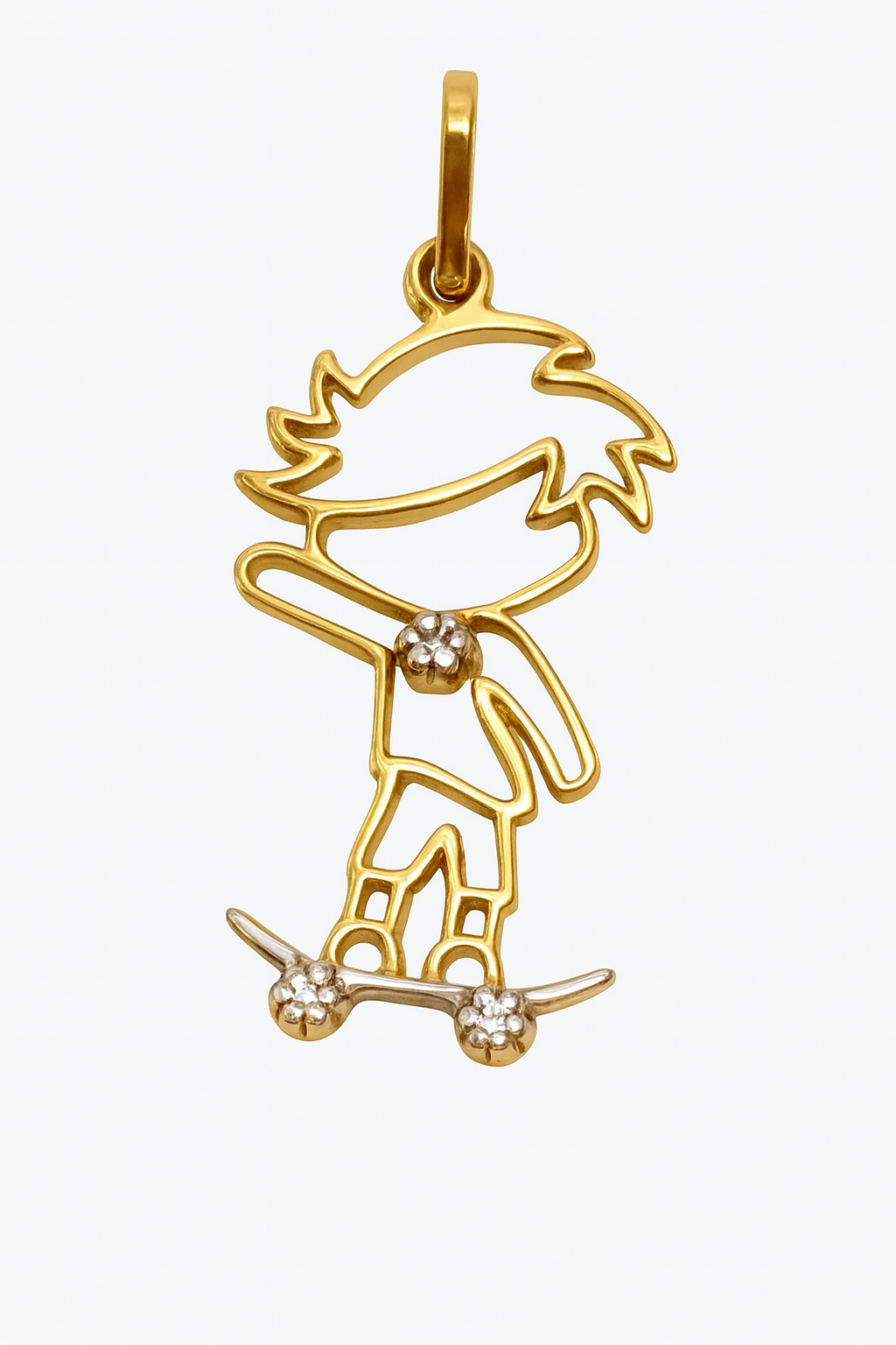 Pingente menino vazado em ouro 18k com 3 brilhantes.