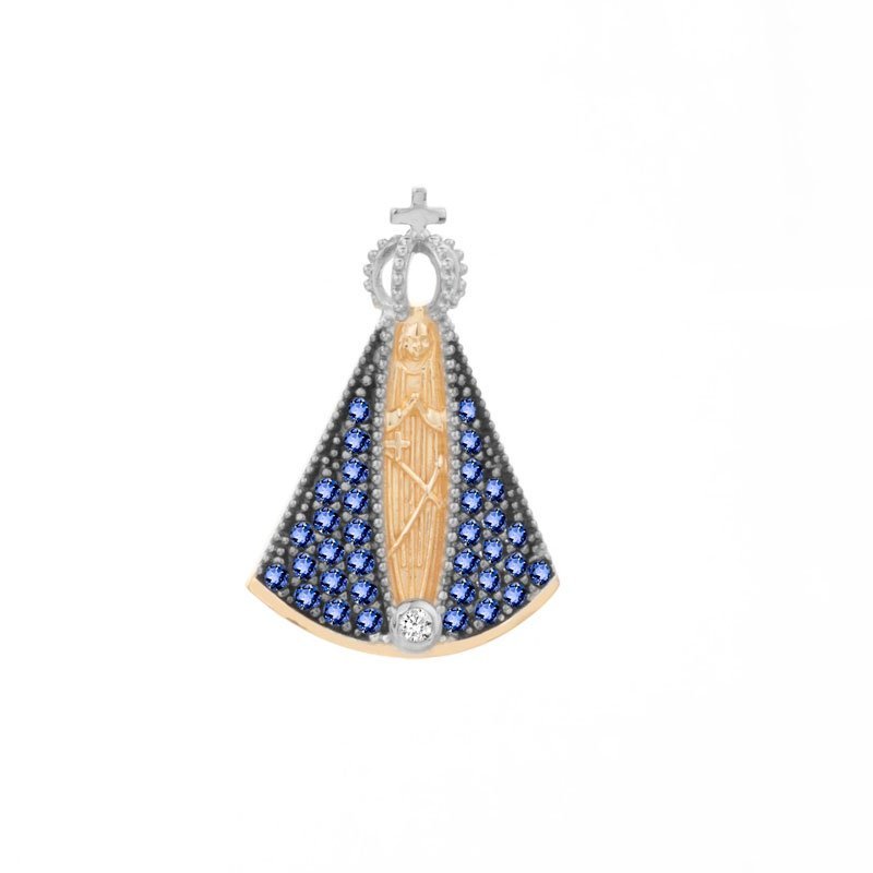 Pingente Nossa Senhora Aparecida G em ouro 18k com zircônias.