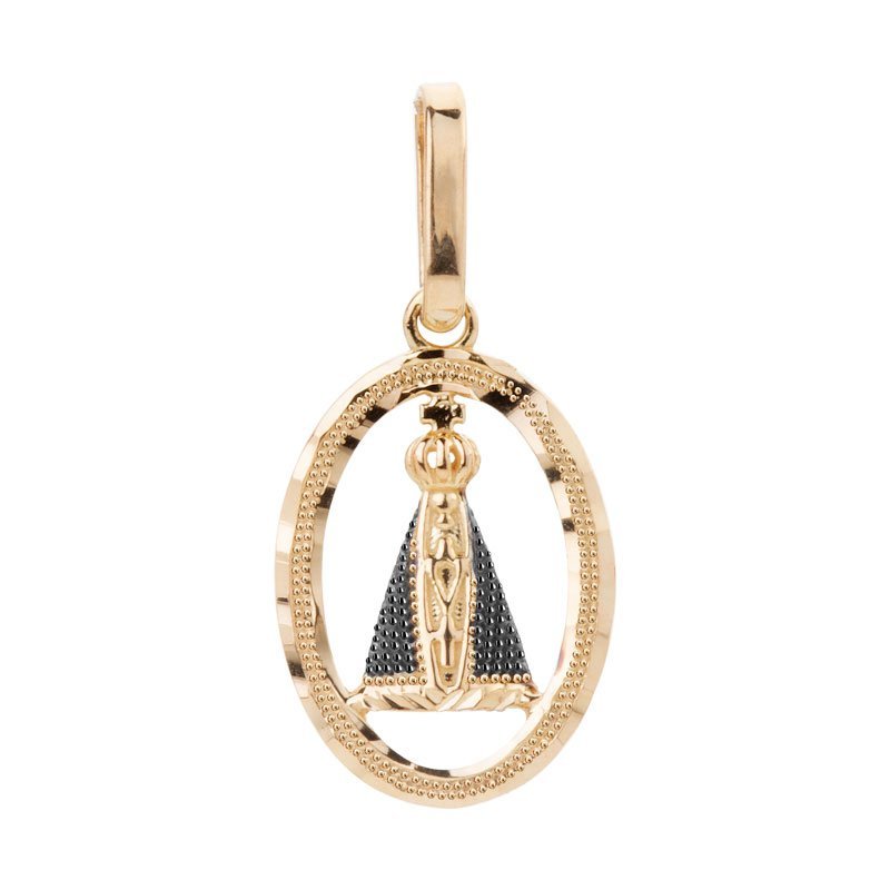 Pingente Nossa Senhora Aparecida M oval em ouro amarelo 18k e ródio.