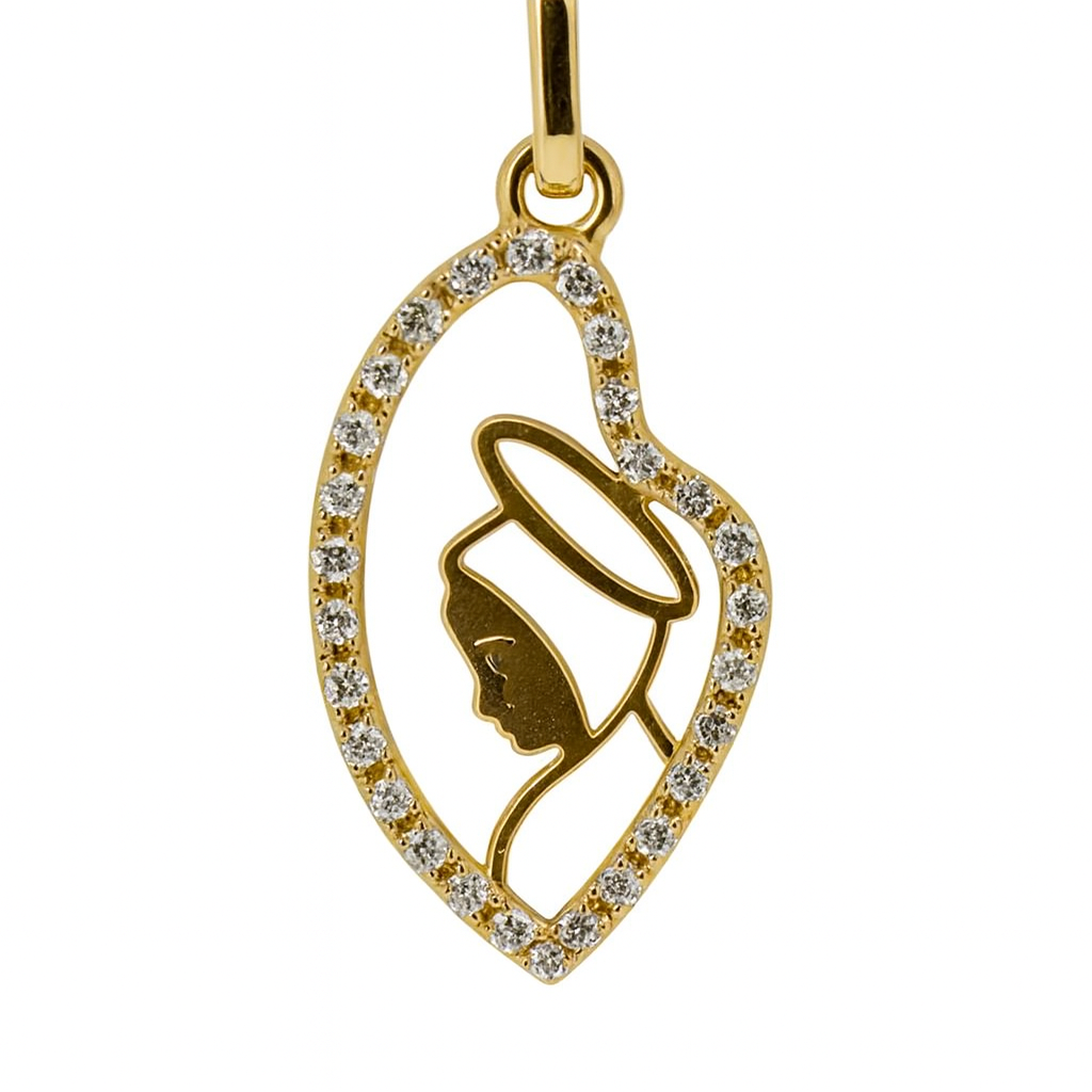 Pingente Nossa Senhora em ouro 18k com 32 brilhantes.