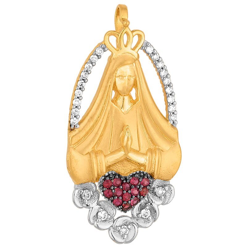 Pingente Nossa Senhora em ouro 18k com 13 rubis e 23 brilhantes.