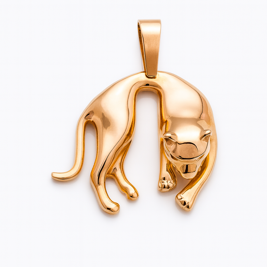 Pingente pantera amarela em ouro 18k com olhos de zircônias.