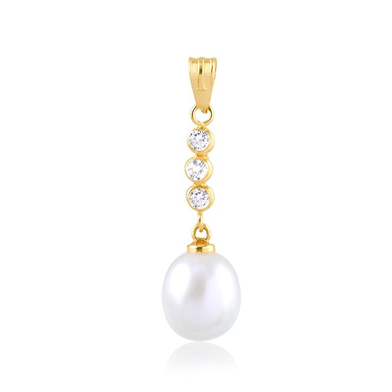 Pingente em ouro 18k com pérola e 3 zircônias.