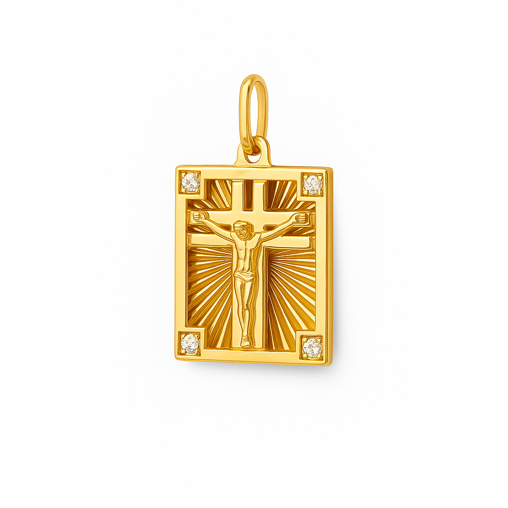 Pingente placa crucifixo em ouro 18k com 4 brilhantes.