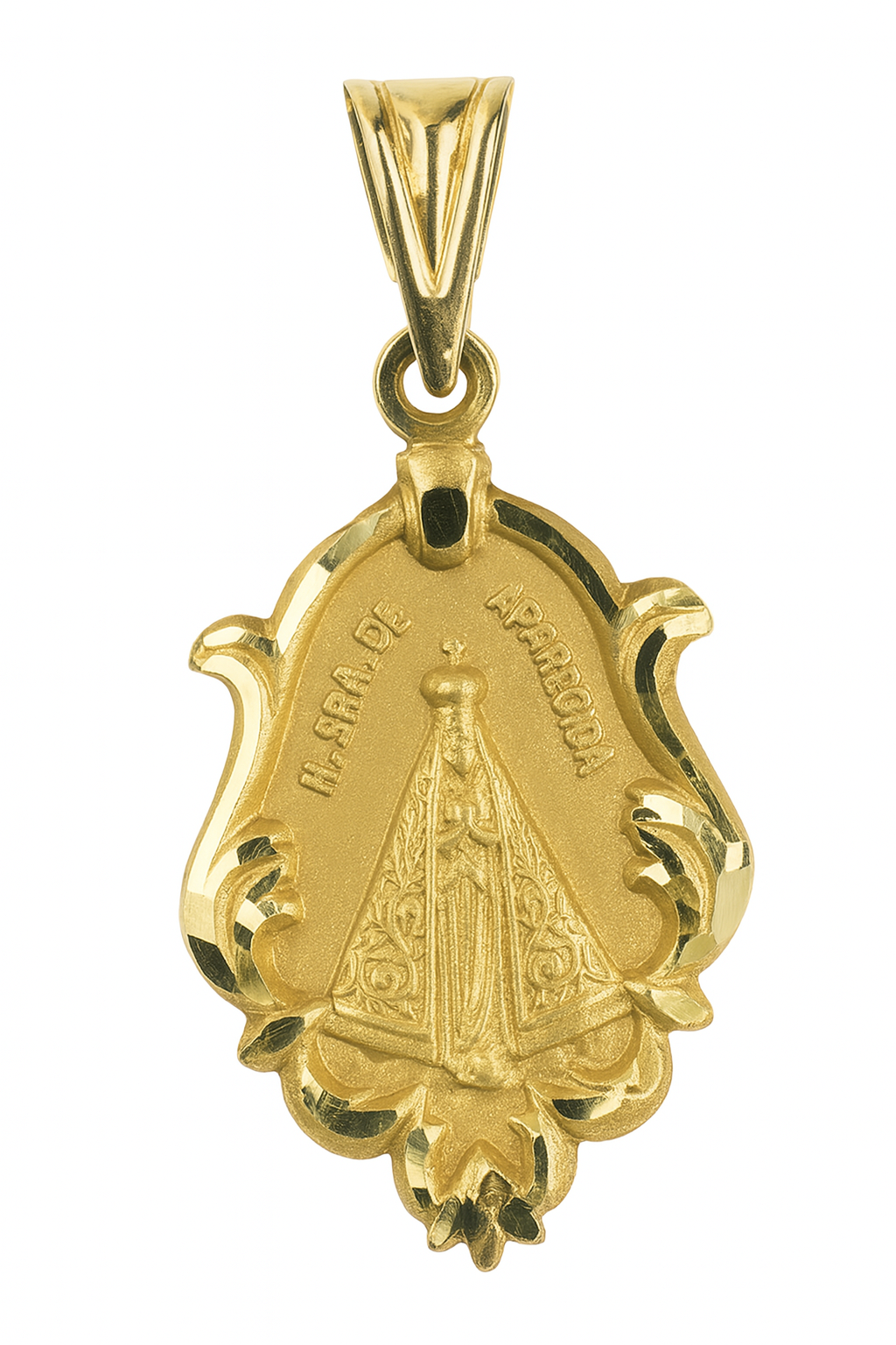 Pingente placa Nossa Senhora Aparecida em ouro 18k.