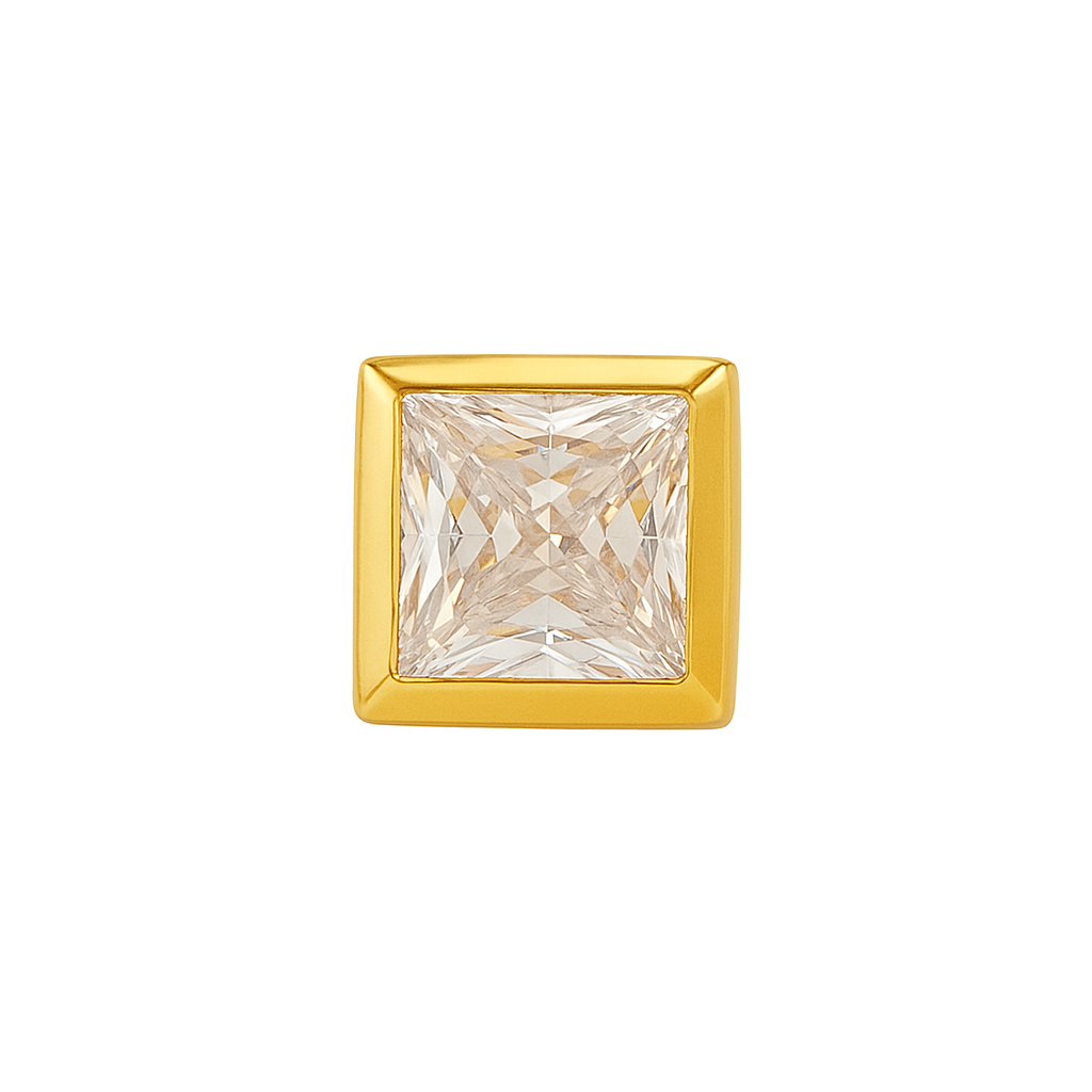 Pingente ponto de luz quadrado galeria 8mm em ouro 18k com zircônia.