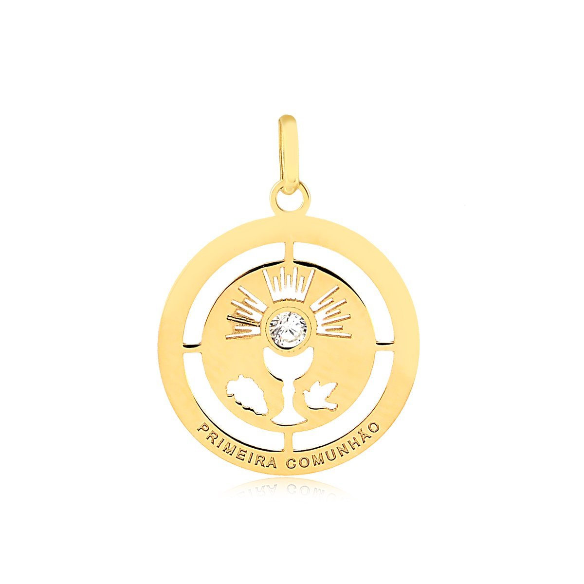 Pingente primeira comunhão em ouro 18k com zircônia.