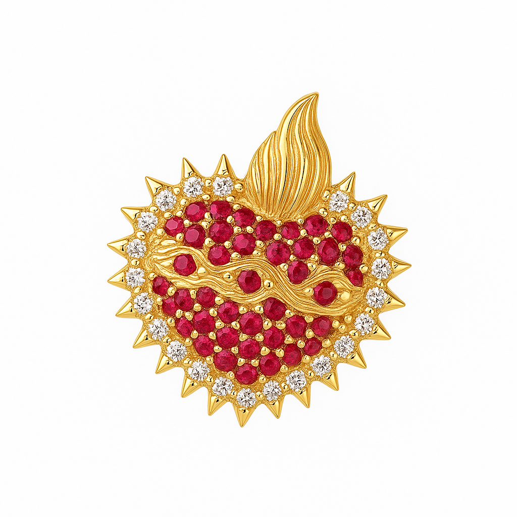 Pingente Sagrado Coração de Jesus em ouro 18k com zircônias.