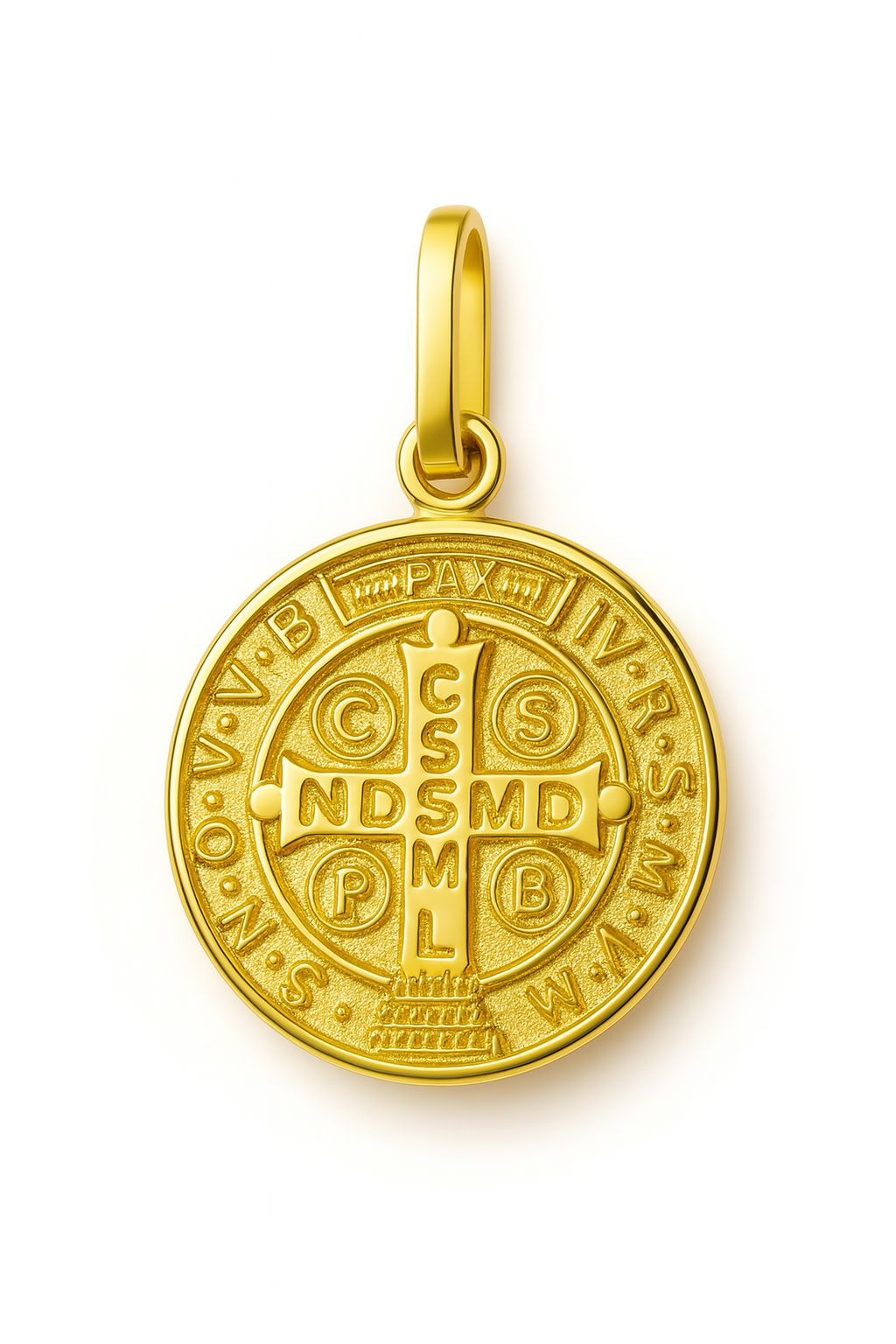 Pingente São Bento duplo em ouro 18k.