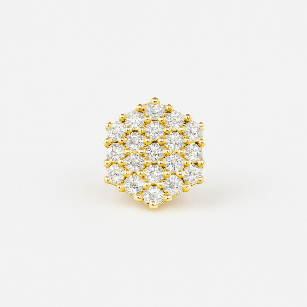 Pingente Sextavado P galeria em ouro 18k com zircônias.