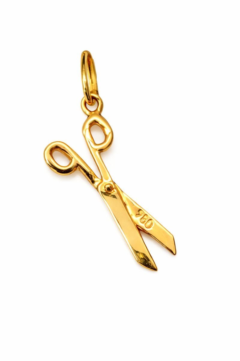 Pingente tesoura em ouro 18k.