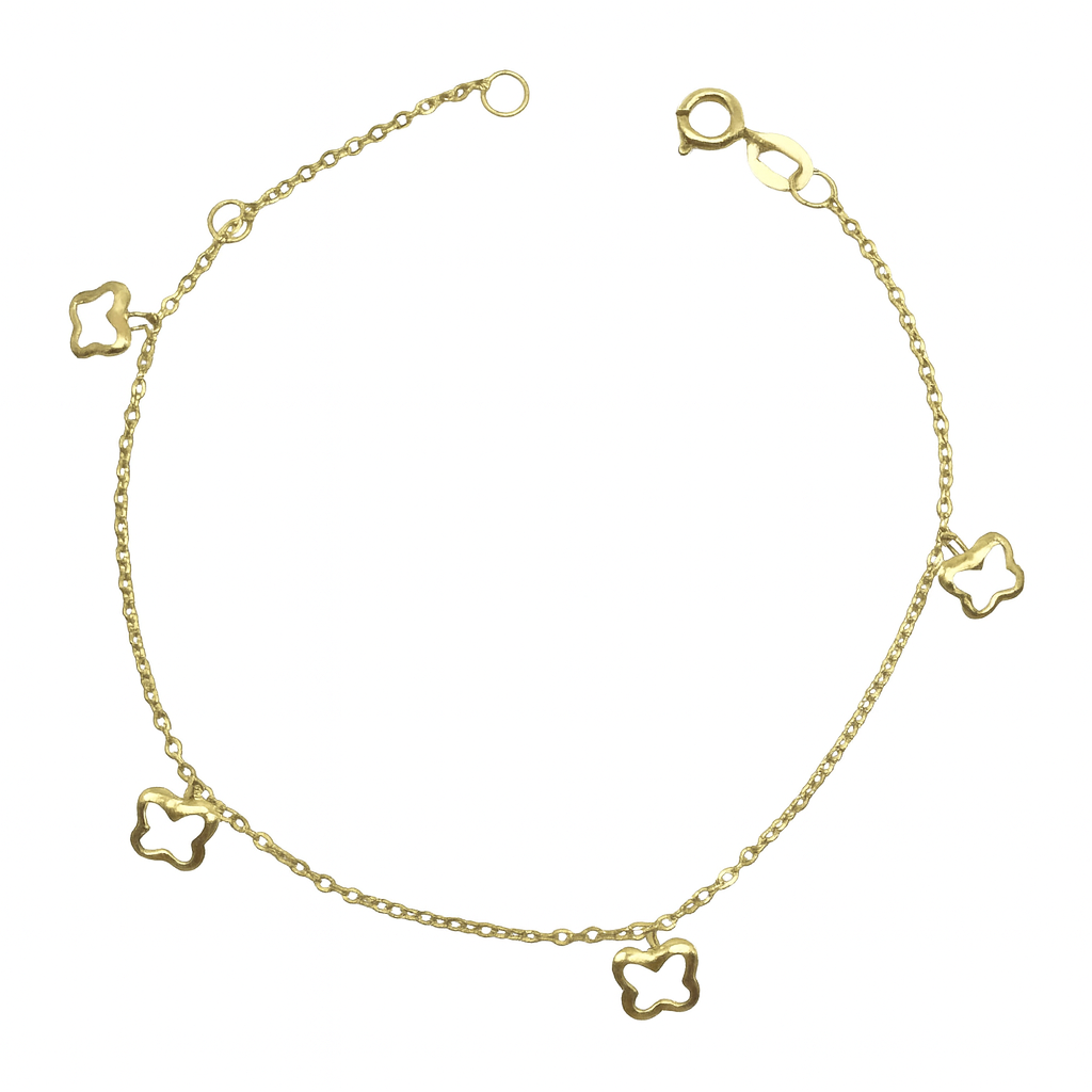Pulseira cadeado de 15cm com borboletas vazadas em ouro 18k.
