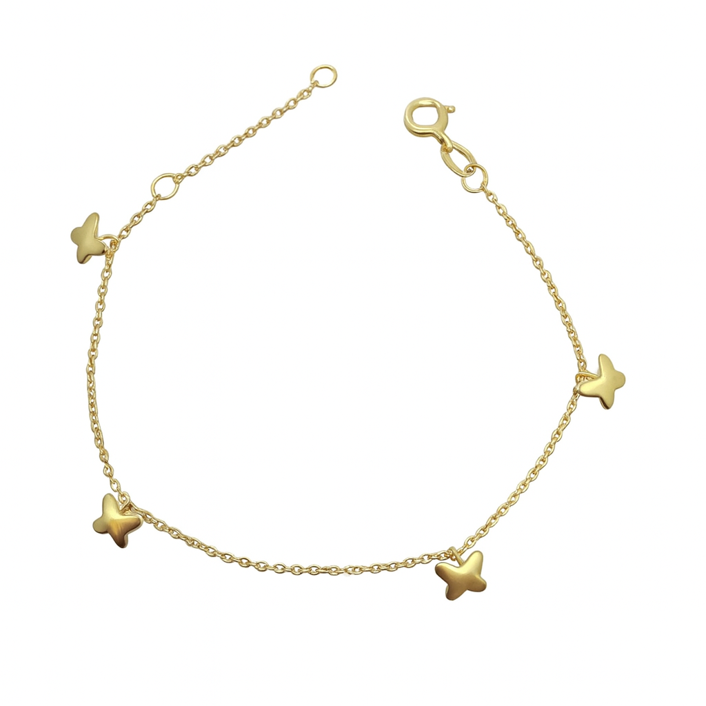 Pulseira cadeado de 15cm com borboletas em ouro 18k.
